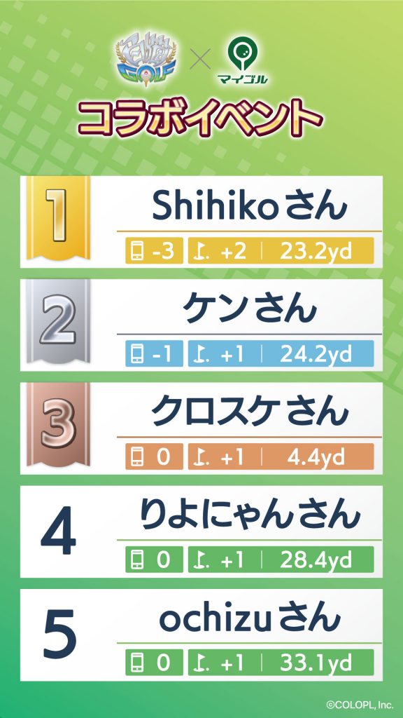 5/16(木)12:00にマイゴル公式Instagram(https://www.instagram.com/mygol_official/)にて優勝者とランキングの発表が行われました。